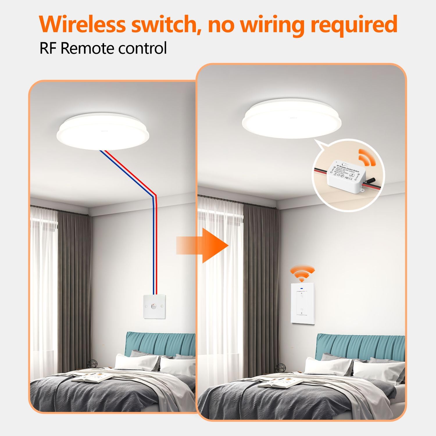 AENTIA AC 110V 120V 220V 240V Wireless Remote Control Light Switch 1500W 1 Channel 433Mhz RF Relay Receiver with 2 Transmitters Keyfob for Lamp Bulb, Easy to Install