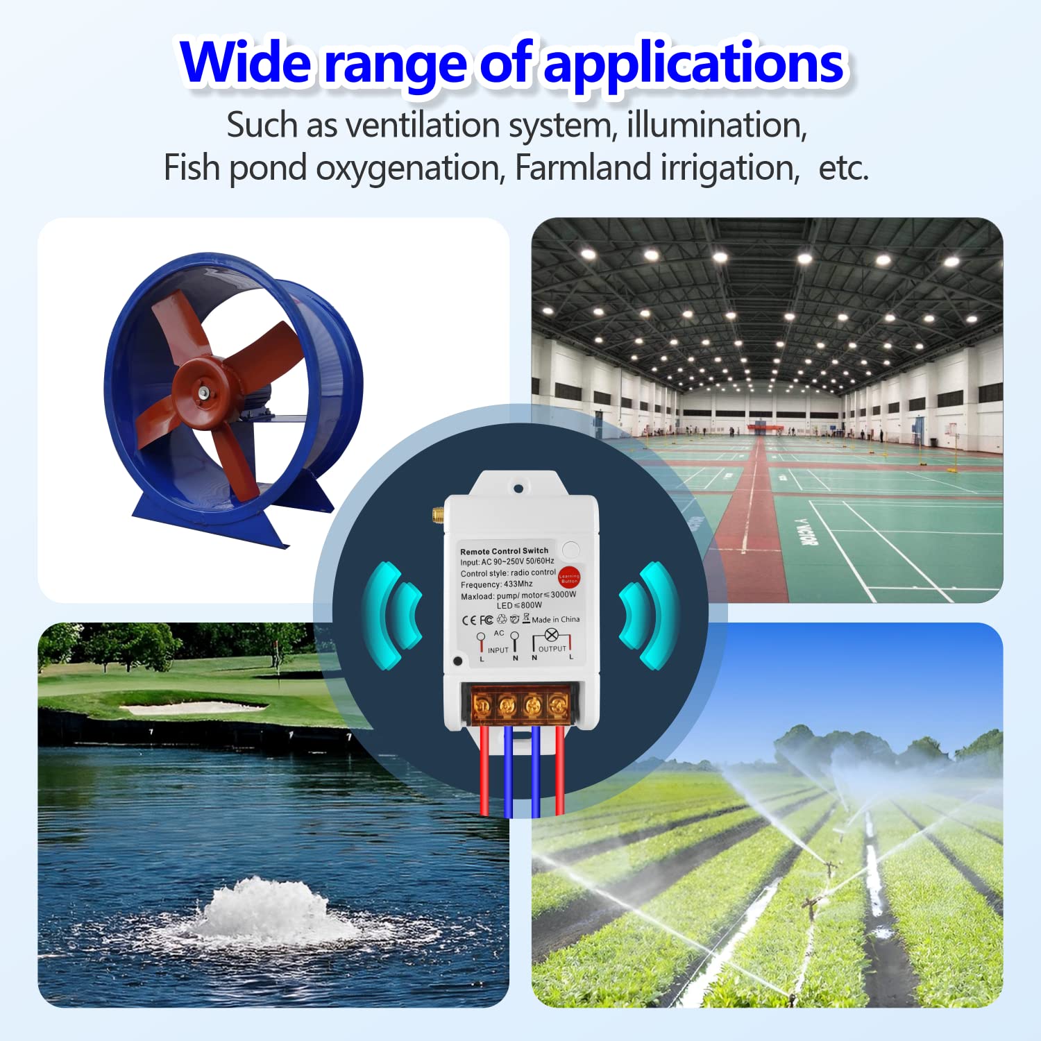 AENTIA Remote Control Switch Pump Motor Wireless Receiver Relay AC 230 V 220 V 3000 W and 2 Transmitters Control Range up to 100 - 300 m for Water Pump Lights Motor