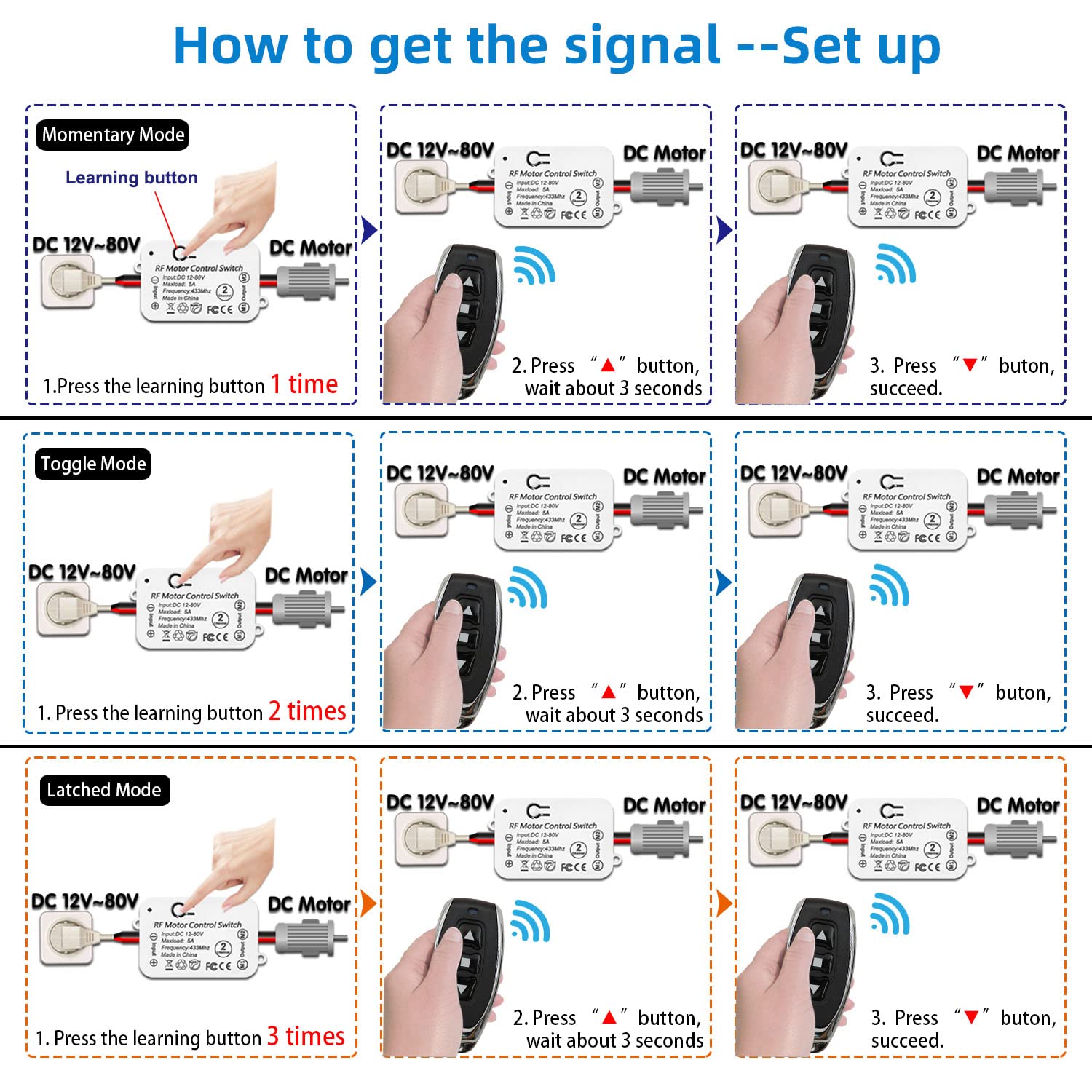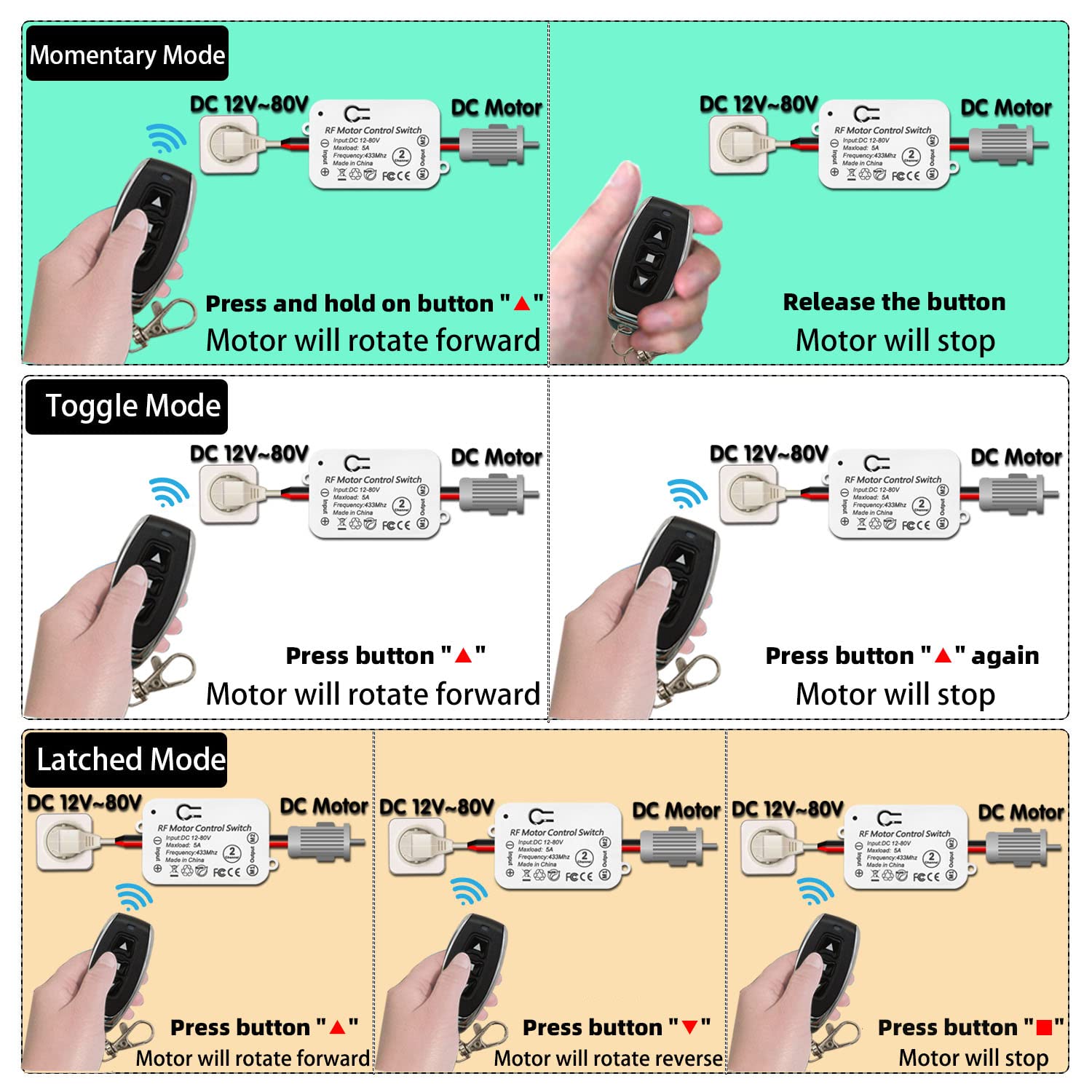 AENTIA Wireless DC Motor Remote Control Switch Controller Receiver Relay DC 12 V - 80 V 5A with 2 Transmitters, Radio Control Motor Forward and Backward